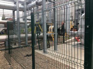 Nearly complete fencing surrounding the works area for Reckitt Benckiser.