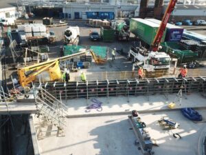 Birds eye drone shot during construction of UNILEVERS new waste water treatment plant in Burton.
